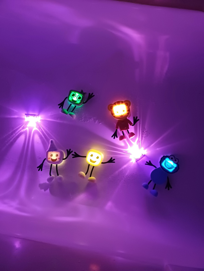 Maak kennis met Blair, jouw lichtgevende speelkameraadje voor in bad, het zwembad of in een drinkbeker. Blair wordt geleverd met twee lichtgevende blokjes in de doos. De batterij per blokje gaat 16 uur mee (actief in water). De batterij is niet vervangbaar.